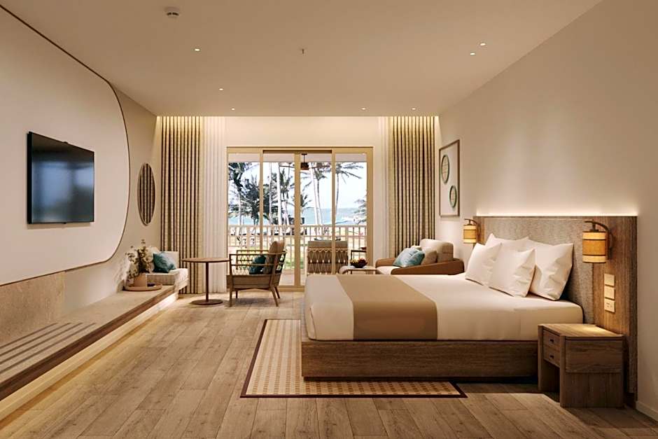 Modern room features a private balcony with ocean views. It features a private spa bath, a flat-screen TV and tea/coffee making facilities.